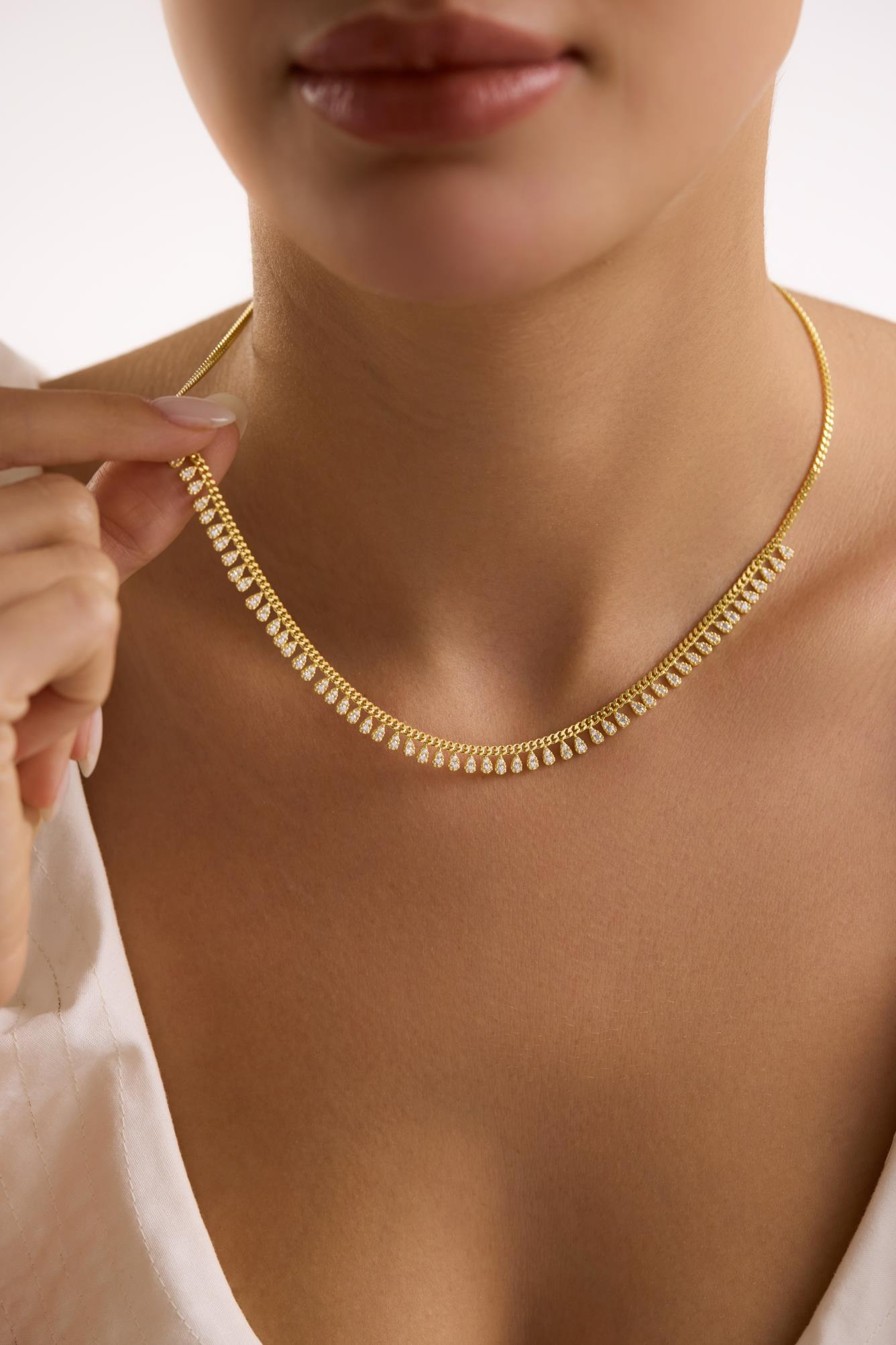 925 Ayar Gümüş Gold Kaplama Gurmet Zincirli Minimal Damla Kolye (NRZ1000672)