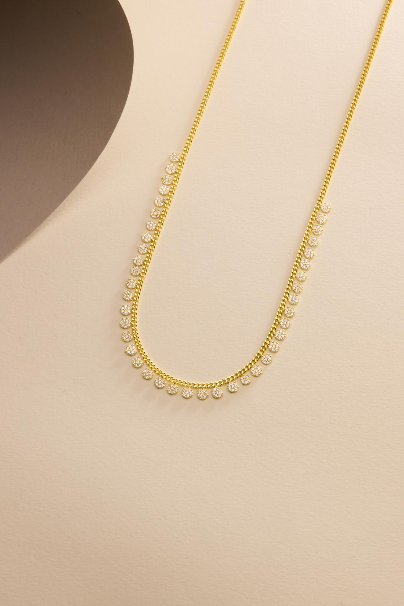 925 Ayar Gümüş Gold Kaplama Gurmet Zircirli Zirkon Taşlı Yuvarlak Tasarım Kolye