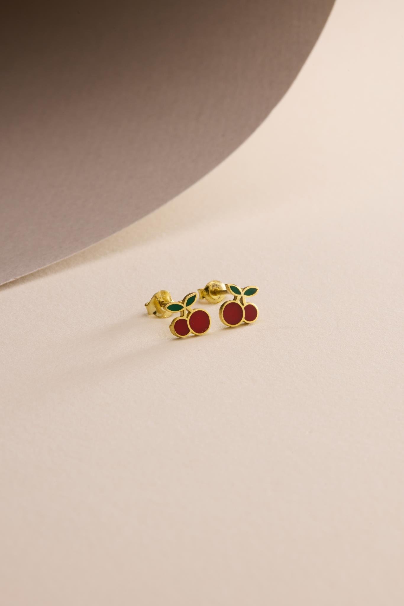 925 Ayar Gümüş Gold Kaplama Minik Kiraz Küpe