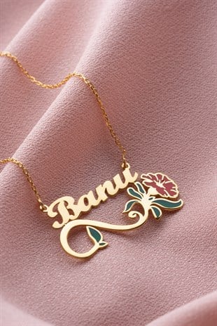 925 Ayar Gümüş Kişiye Özel İsimli Gül Detaylı Kolye