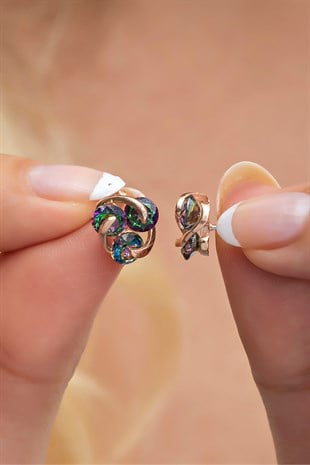 925 Ayar Gümüş Mistik Topaz Taşlı 3 Taşlı Tria Küpe