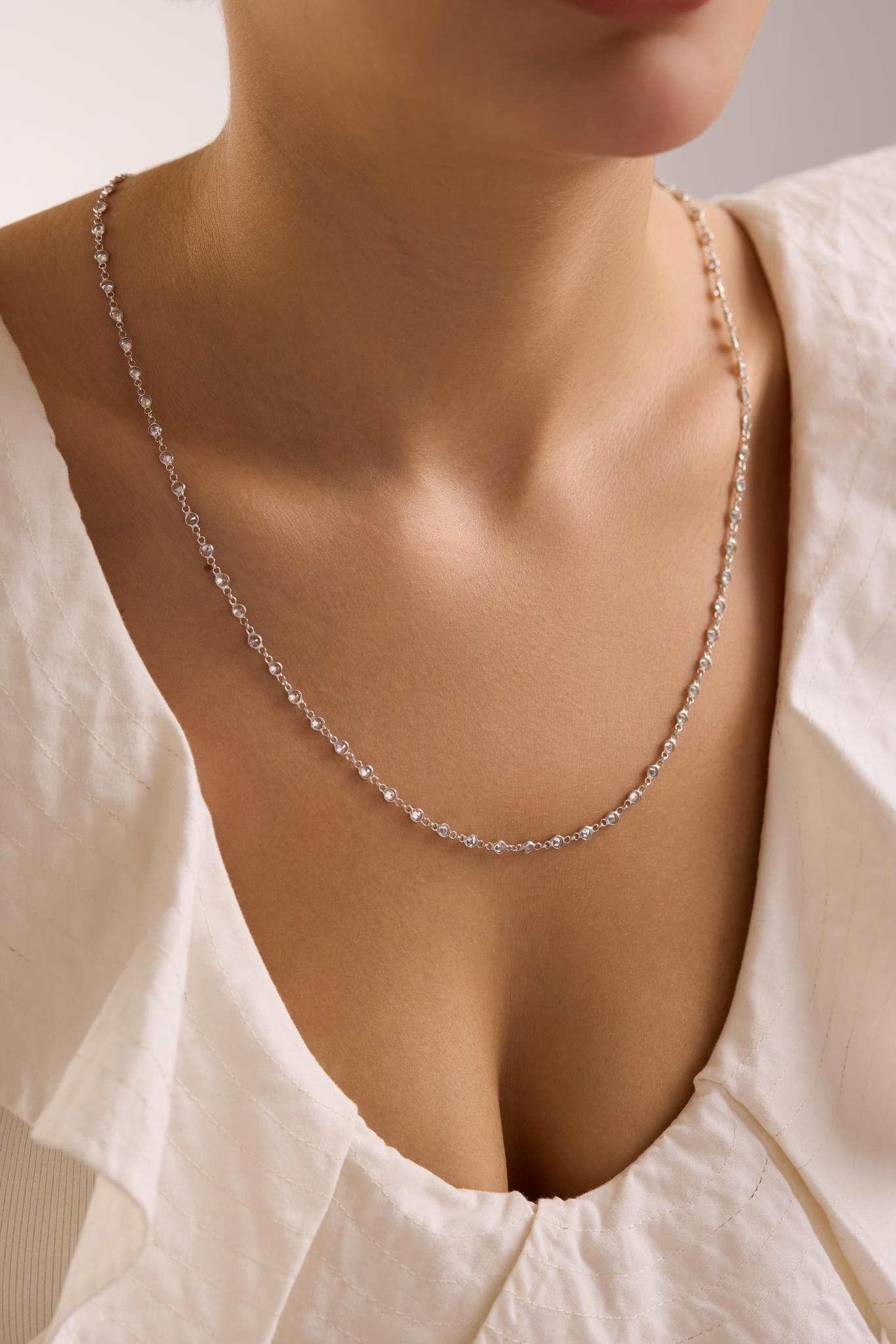 925 Ayar Gümüş Rodyum Kaplama 85 Cm Uzunluk Beyaz 3 mm Zirkon Taşlı Kolye