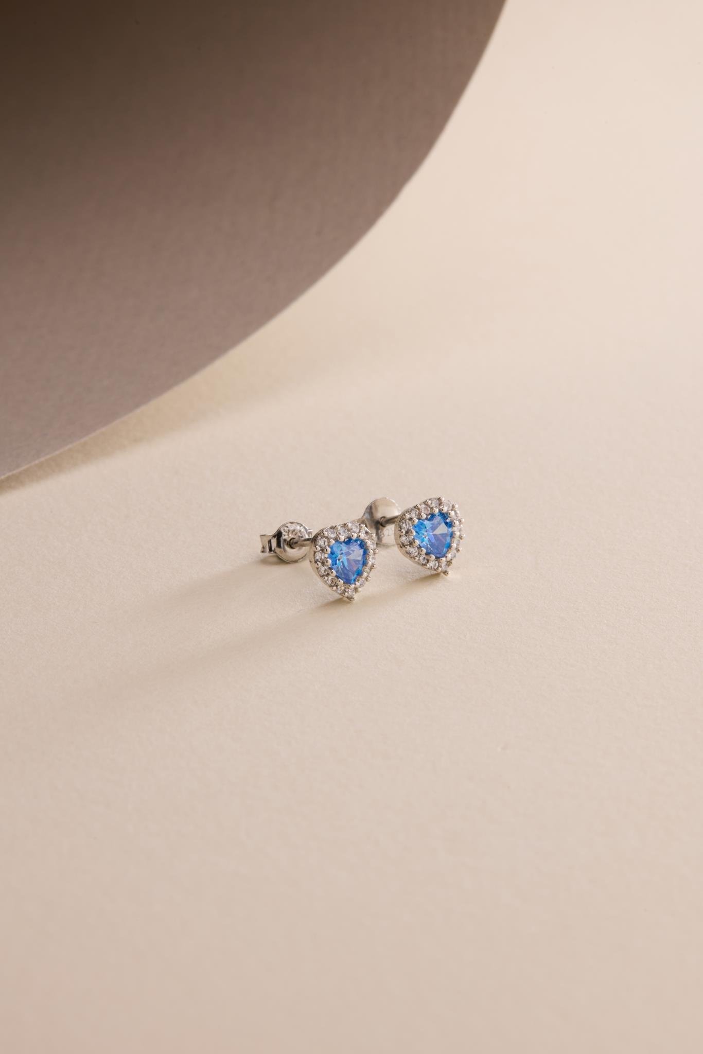 925 Ayar Gümüş Rodyum Kaplama Aquamarin Taşlı Kalp Model Küpe