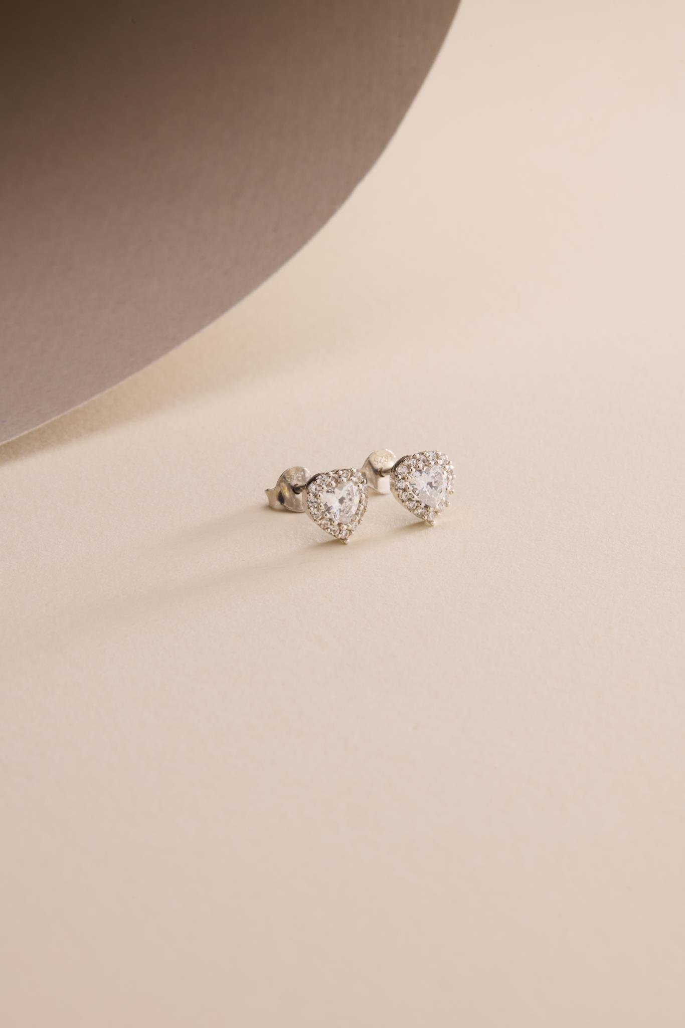 925 Ayar Gümüş Rodyum Kaplama Beyaz Taşlı Kalp Model Küpe