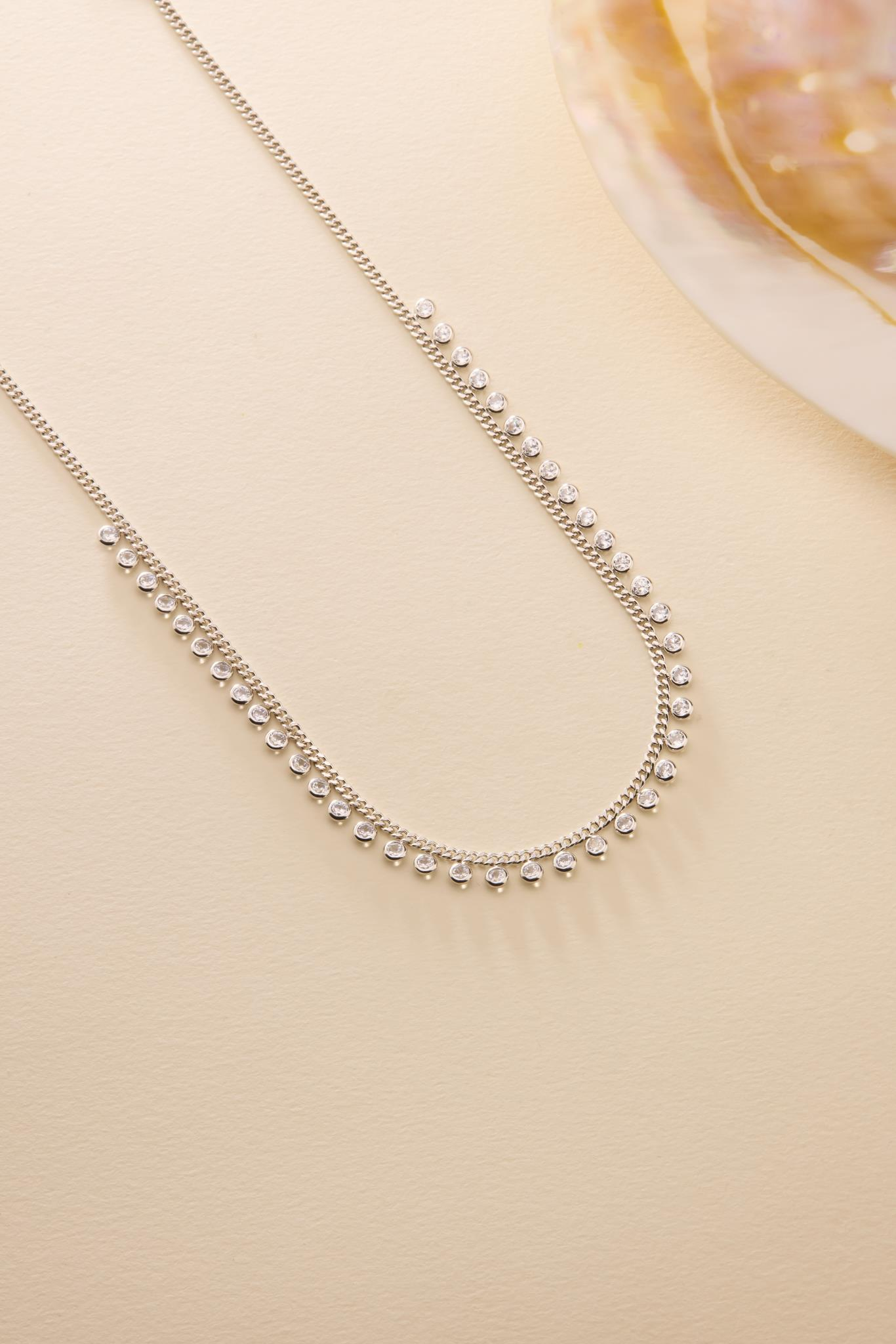 925 Ayar Gümüş Rodyum Kaplama Gurmet Zircirli Beyaz Zirkon Taşlı Kolye